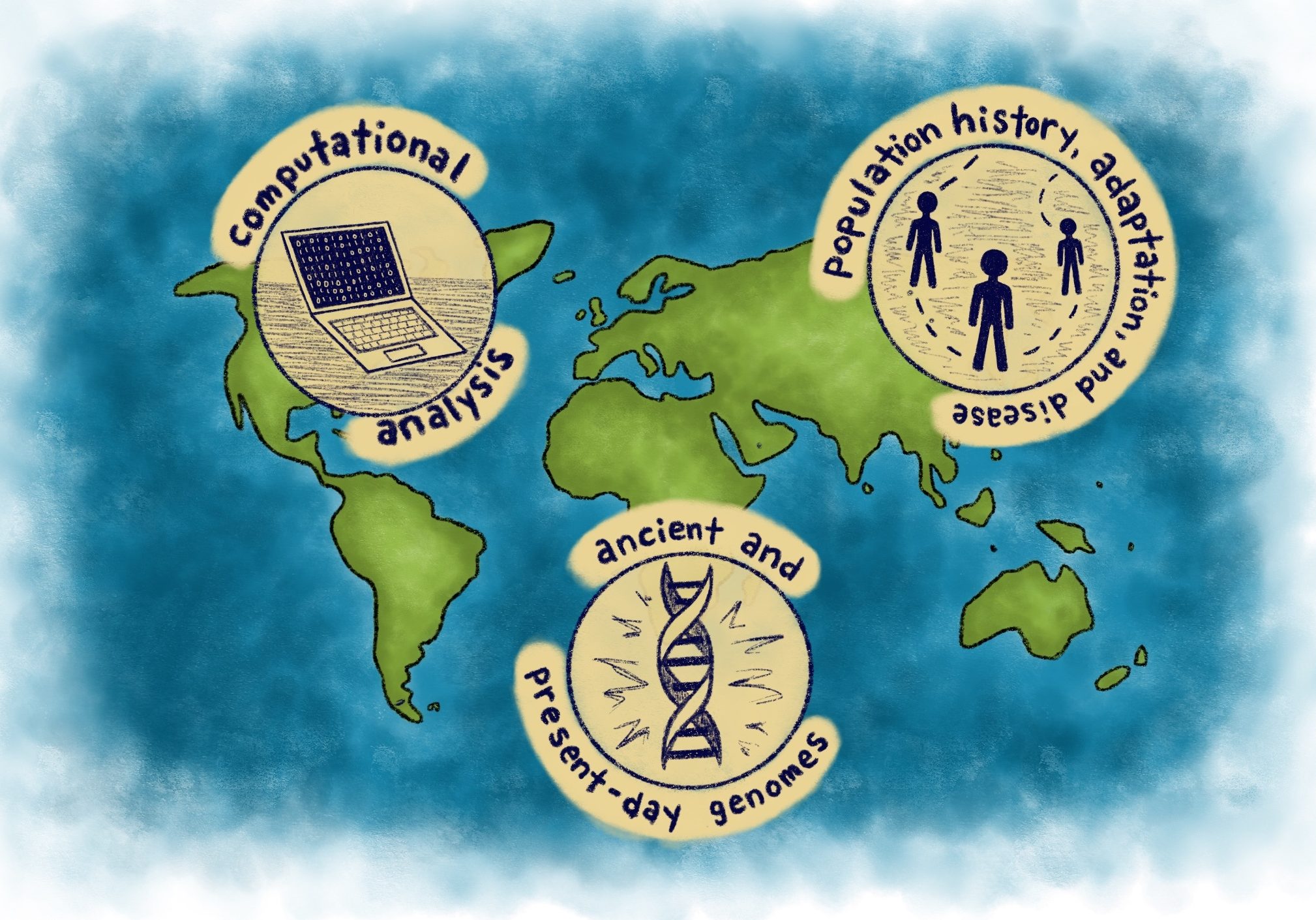 Our research focuses on using genomic data from both ancient and present-day individuals to reconstruct human evolutionary history and understand the forces shaping genetic variation. By integrating large-scale datasets with new analytical approaches, we aim to understand: (1) how evolutionary processes such as mutation rate evolve across individuals, (2) reconstruct key evolutionary events––such as gene flow, population bottlenecks and expansions–– in human history, and (3) leverage population history to identify genetic variants related to human adaptation and disease. Some ongoing projects in the lab are described below.